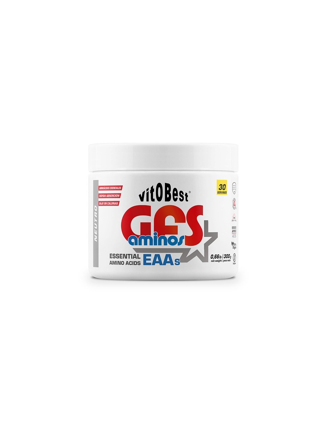 GFS aminos, de Vitobest®, es un complemento alimenticio de aminoácidos esenciales patentado y perfectamente diseñado tanto para mejorar el rendimiento funcional de los atletas (aumenta en un 8 % el rendimiento deportivo)1, como para prevenir y controlar la pérdida de masa y fuerza muscular2. Su calidad y funcionabilidad están avaladas por la Universidad de Alicante.