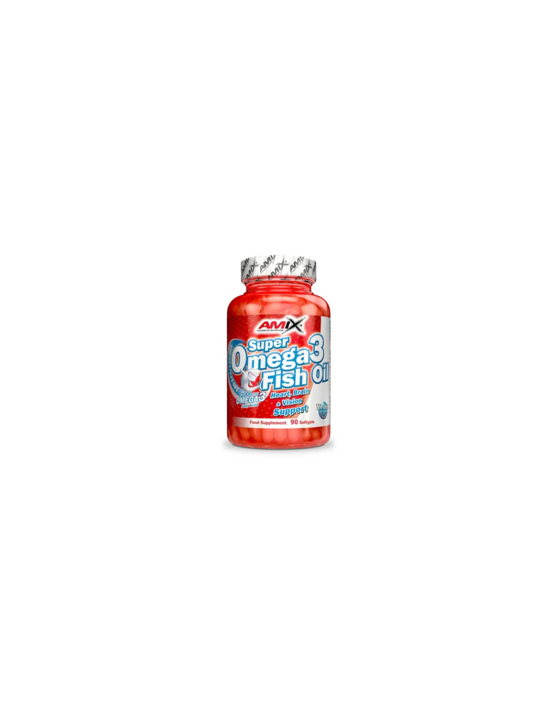 Amix™ Super Omega-3 Fish Oil es un complemento alimenticio en cápsulas blandas que proporciona ácidos grasos Omega-3, específicamente EPA (ácido eicosapentaenoico) y DHA (ácido docosahexaenoico), esenciales para la salud del corazón, el cerebro y la visión.