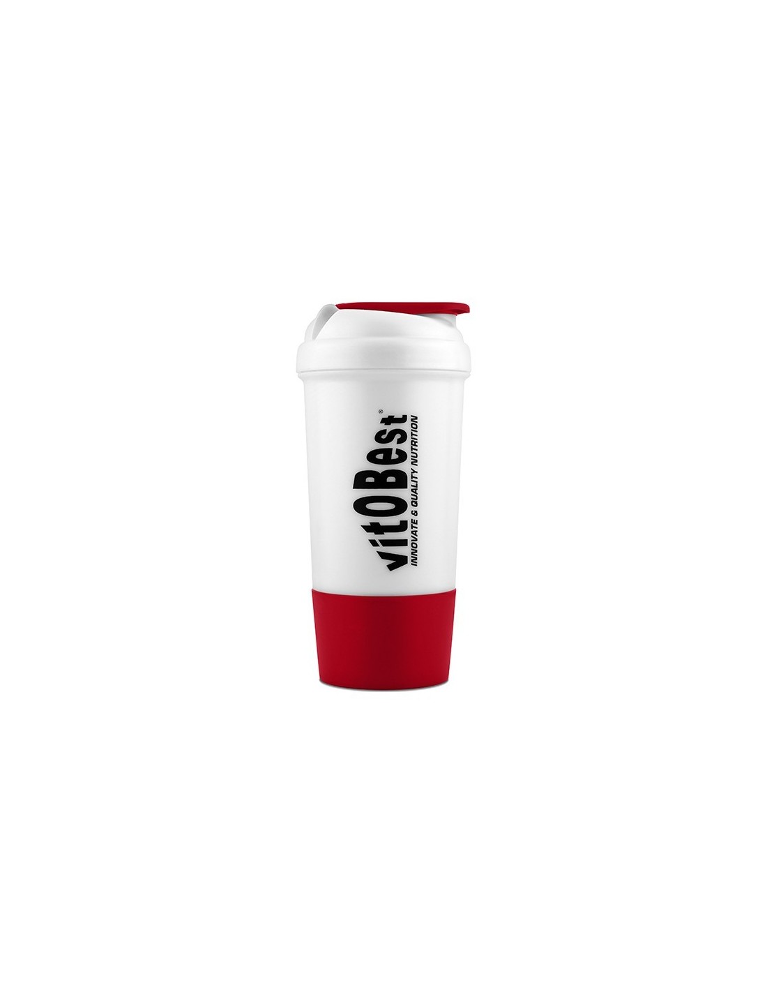 Mezclador Premium oficial de Vitobest® con una capacidad para 500 ml y con un compartimento inferior para llevar tus suplementos en polvo.
