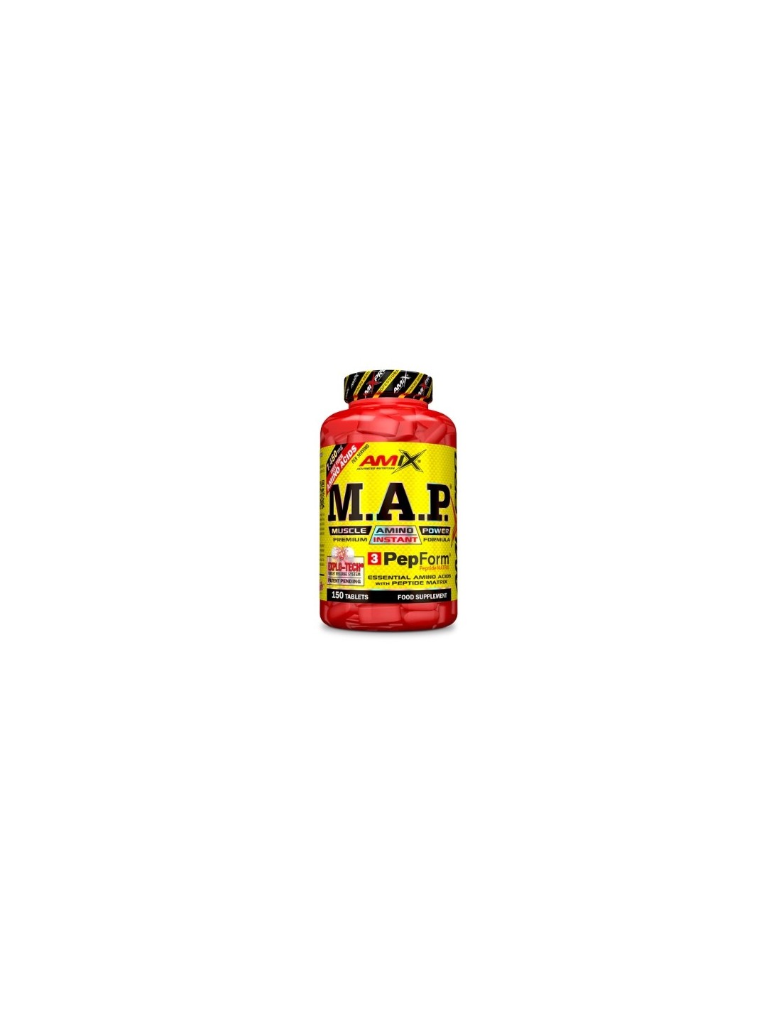 Amix™ M.A.P.® Muscle Amino Power es un complemento alimenticio que contiene aminoácidos esenciales en forma purificada y cristalina, junto con el complejo de péptidos PepForm®. Está formulado para apoyar el mantenimiento y la recuperación muscular.