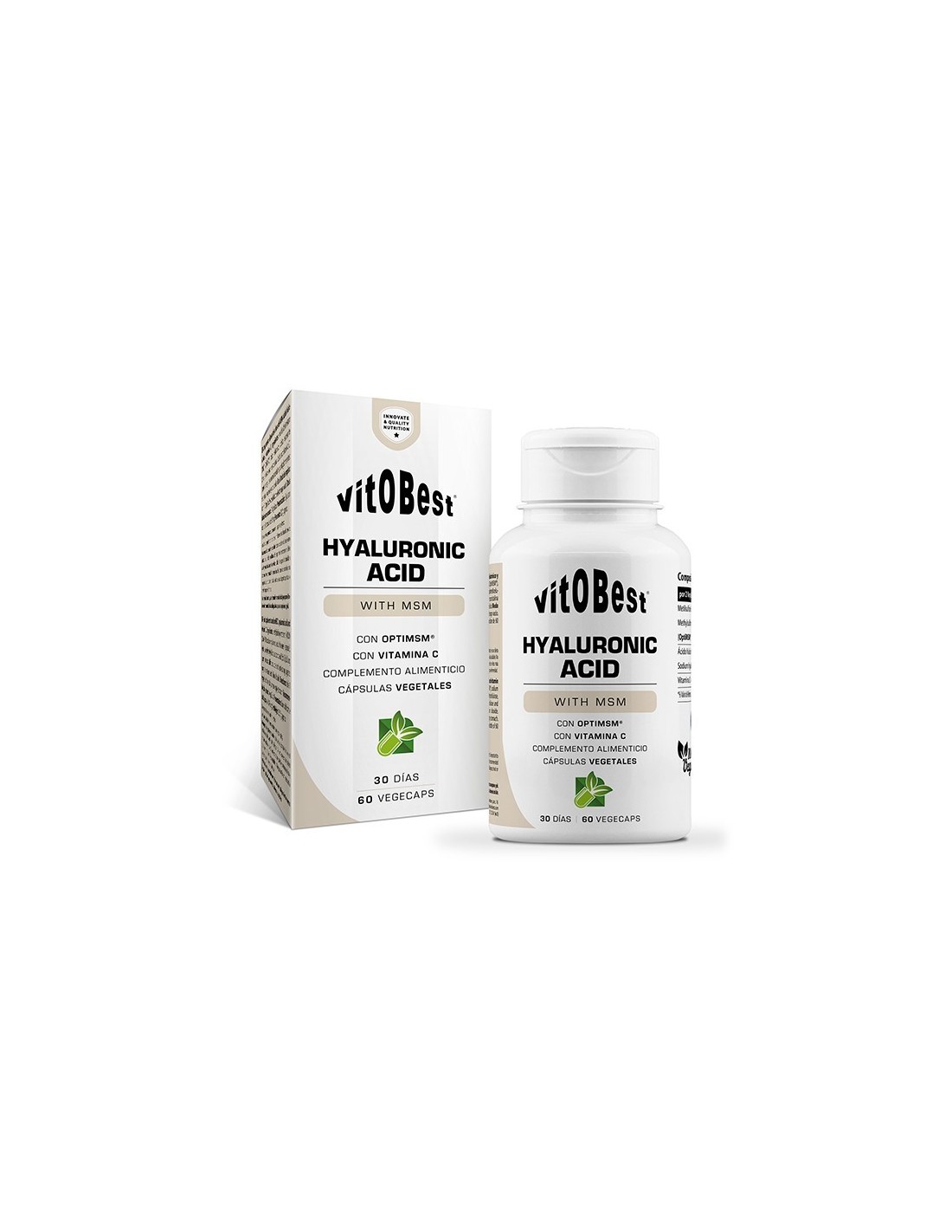 Hyaluronic Acid, de Vitobest®, está enriquecido con 200 mg de OptiMSM® (Metil-Sulfonil-Metano) por cápsula, que aporta azufre y está demostrado que contribuye a la salud articular y a la recuperación de los tejidos3.