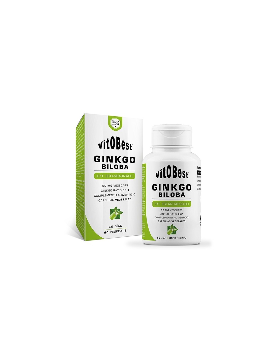 Ginkgo Biloba, de Vitobest®, es un suplemento elaborado a partir del extracto seco de la planta homónima (24 % flavonas y 6 % lactonas). Por sus propiedades antioxidantes, vasodilatadoras y neuroprotectoras, es una de las especies vegetales más usadas en naturopatía.