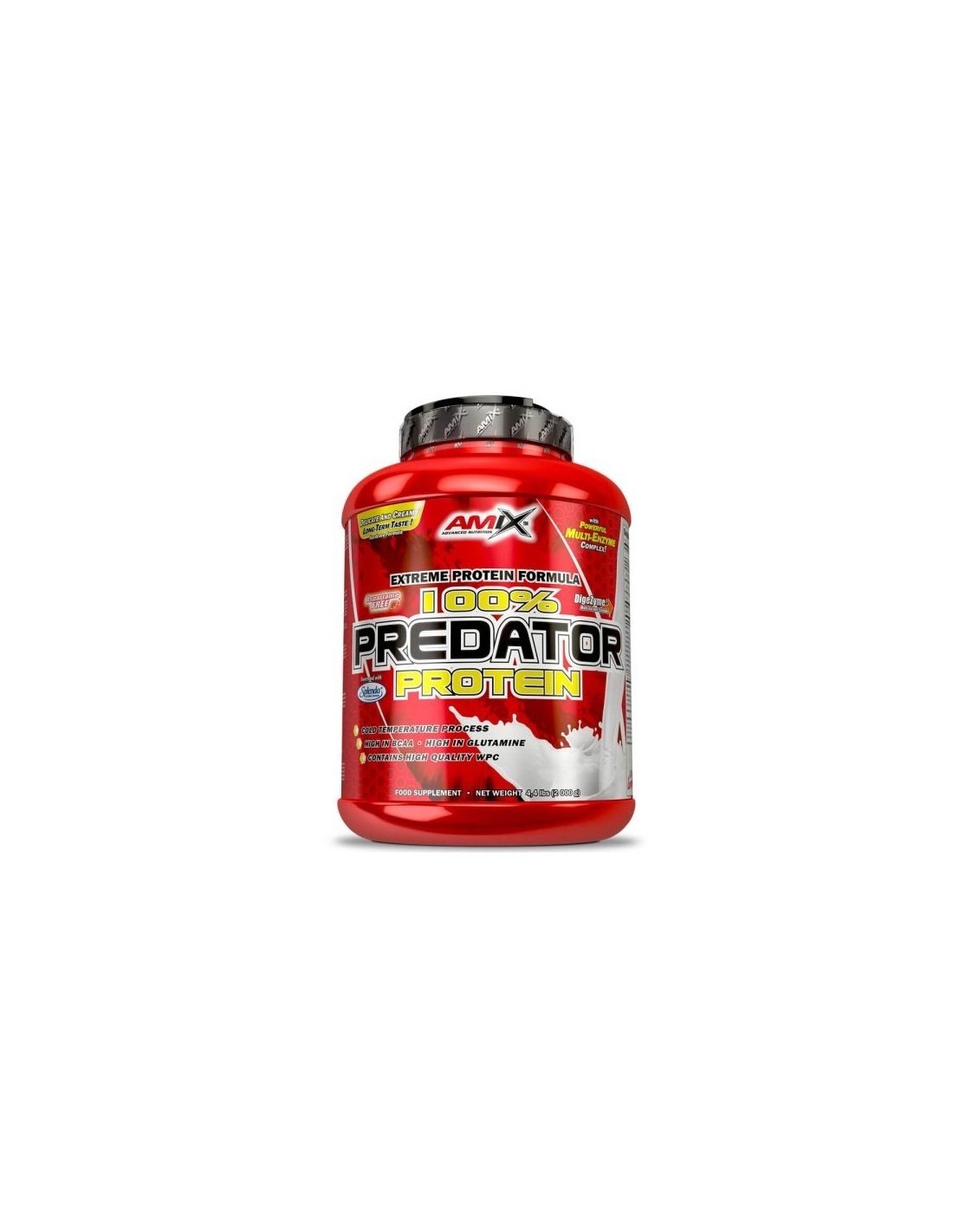 Amix™ PREDATOR Protein es un complemento alimenticio en polvo diseñado para apoyar dietas altas en proteínas. Está compuesto principalmente por concentrado de proteína de suero (WPC) procesado a baja temperatura y ultrafiltrado. Además, está completamente libre de aspartamo y contiene el complejo multienzimático patentado DigeZyme®.