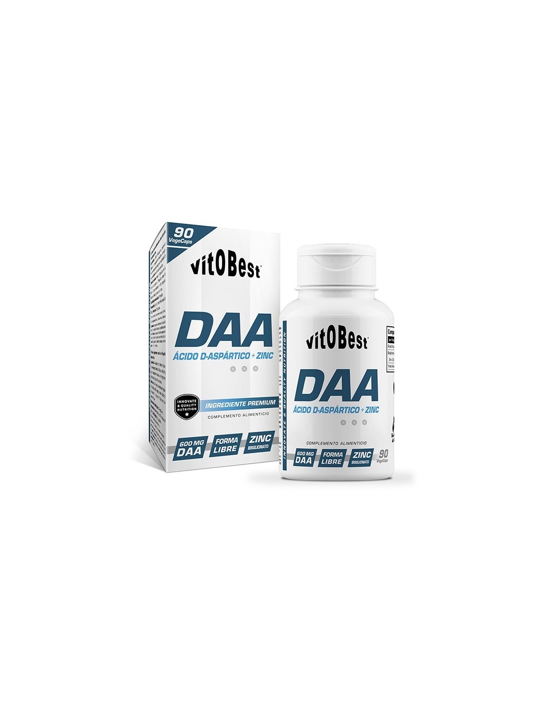 Ingredientes: ácido D-Aspártico, espesante (cápsula): hidroxipropilmetilcelulosa, antiaglomerante: estearato de magnesio, bisglicinato de zinc y antiaglomerante: dióxido de silicio.