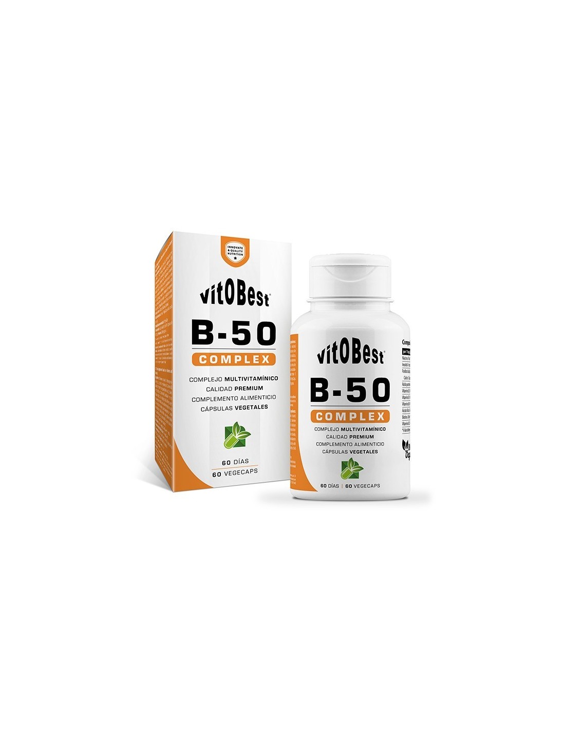 B-50 Complex, de Vitobest®, es un complejo vitamínico que contiene las ocho vitaminas que forman el grupo B (B1, B2, B3, B5, B6, B7, B9 y B12) más carbonato cálcico e inositol, un elemento importantísimo para el control de la expresión génica1.
