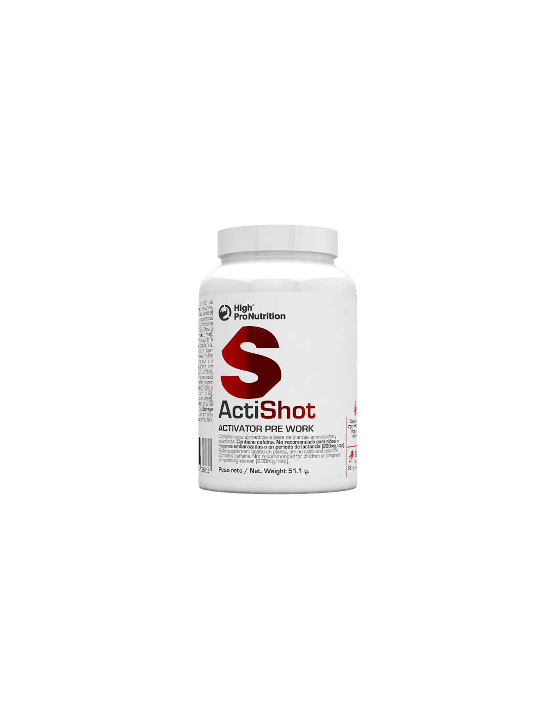 ActiShot de High Pro Nutrition, es un activador formulado con extracto de semilla de uva, cafeína, guaraná, taurina, teanina y vitaminas B6 y B12