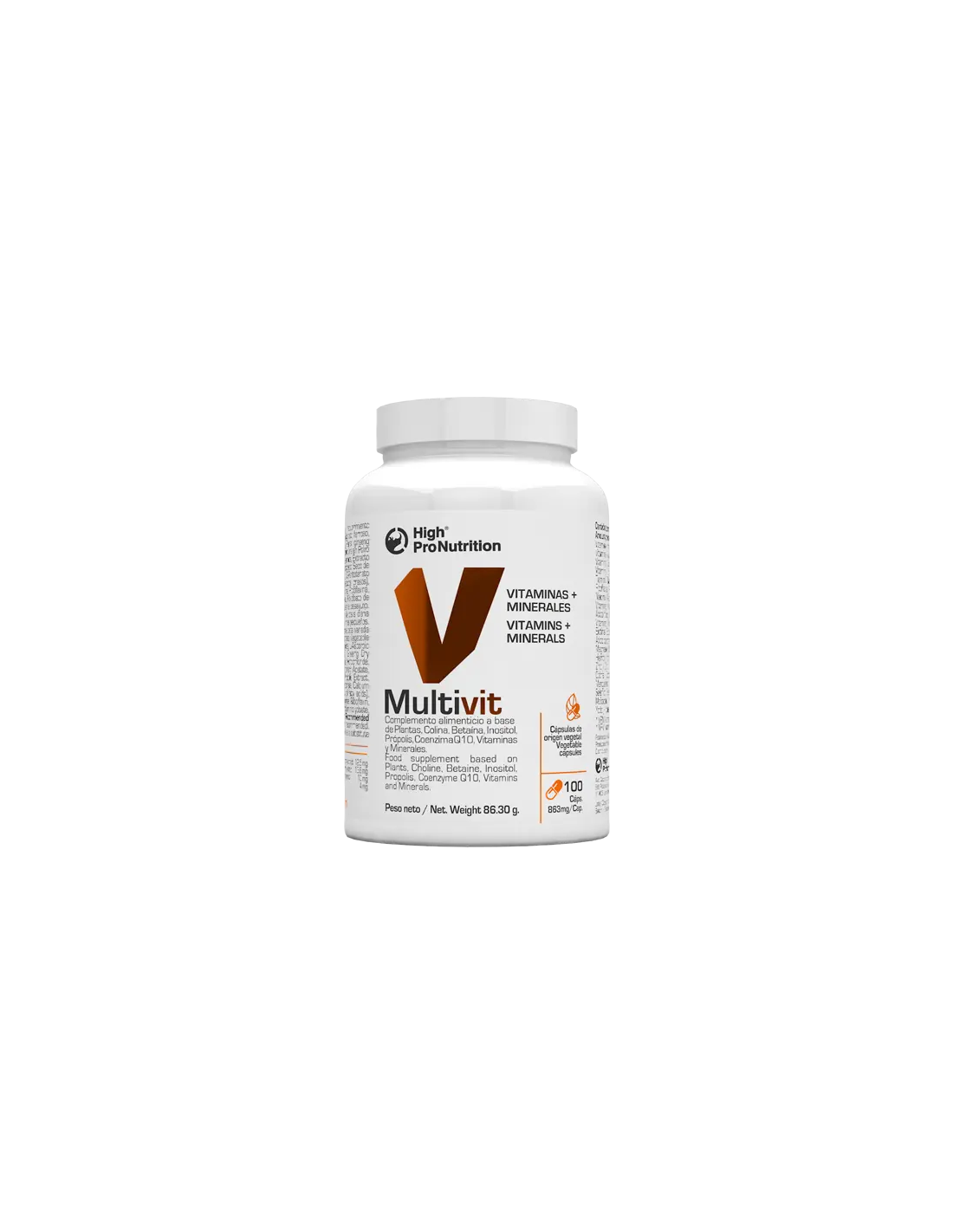 Colina Bitartrato, Cápsula vegetal [Agente de recubrimiento (Hidroxipropilmetilcelulosa)], Óxido de magnesio, Ácido L-ascórbico, Bisglicinato ferroso, Agente de carga (Celulosa microcristalina), Extracto seco de Ginseng (Panax ginseng C.A. Mey, 5% Ginsenósidos), Citrato de zinc, Betaína clorhidrato, Alga Espirulina en Polvo (Arthrospira platesis) (SULFITOS), Acetato de DL-Alfa-Tocoferilo, Nicotinamida, Extracto Seco de Sophora japónica (Sophora Japonica L.), Extracto de Propolis, Extracto Seco de Naranja (Citrus sinensis L.), Citrato de Manganeso, Gluconato Cúprico, D-Pantotenato Cálcico, Acetato de retinilo, Antiaglomerante (Sales magnésicas de ácidos grasos), Coenzima Q10, Cianocobalamina, Colecalciferol, Clorhidrato de Piridoxina, Riboflavina, Clorhidrato de Tiamina, Ácido Pteroilmonoglutámico, Yoduro de Potasio, Molidbato de sodio, Selenito de Sodio, D-Biotina.