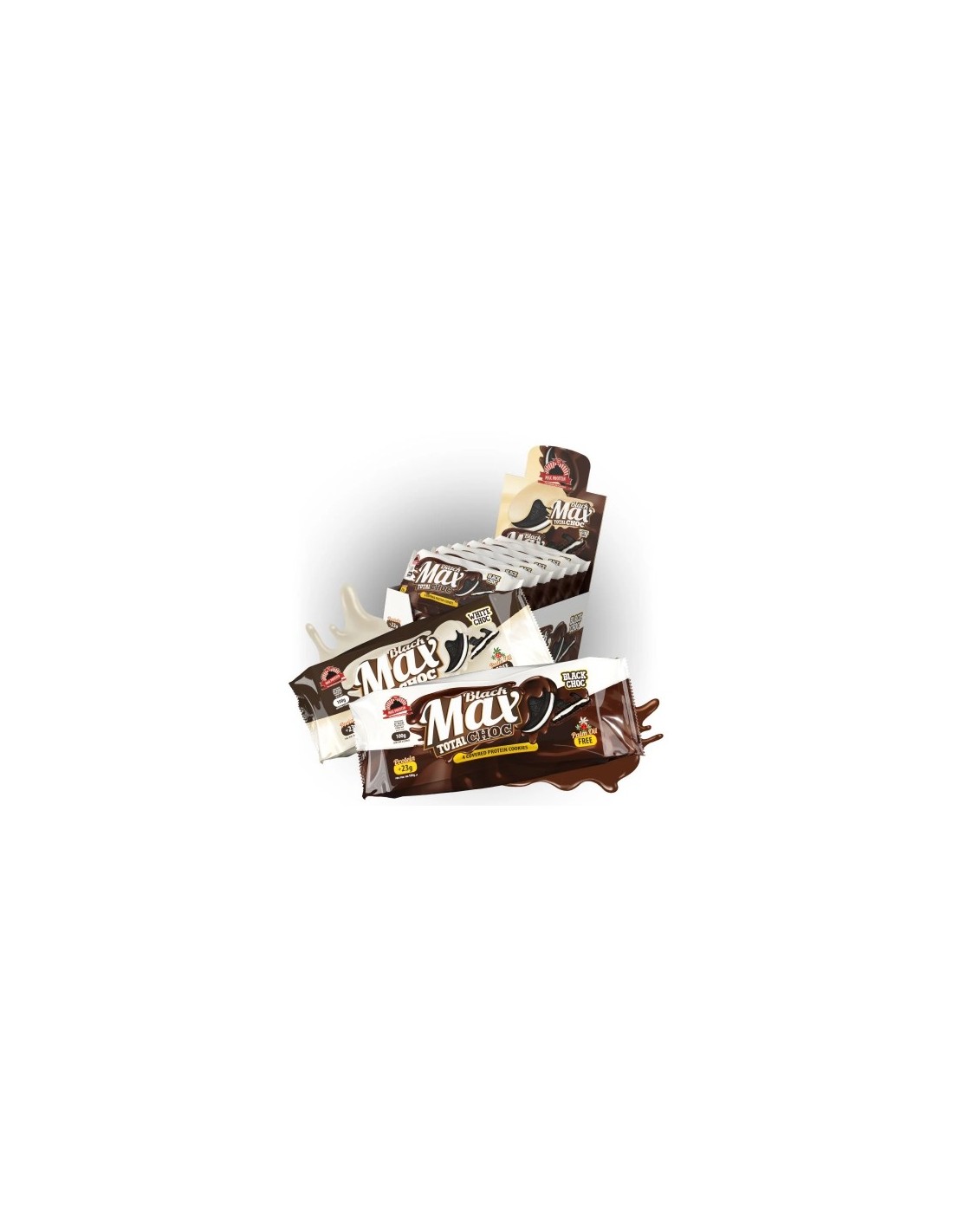 Las clásicas galletas Blackmax TotalChoc WhiteChoc y BlackChoc de Max Protein® tienen más de un 23% de proteína y no contienen aceite de palma ni grasas hidrogenadas, además de no contener azúcares añadidos.