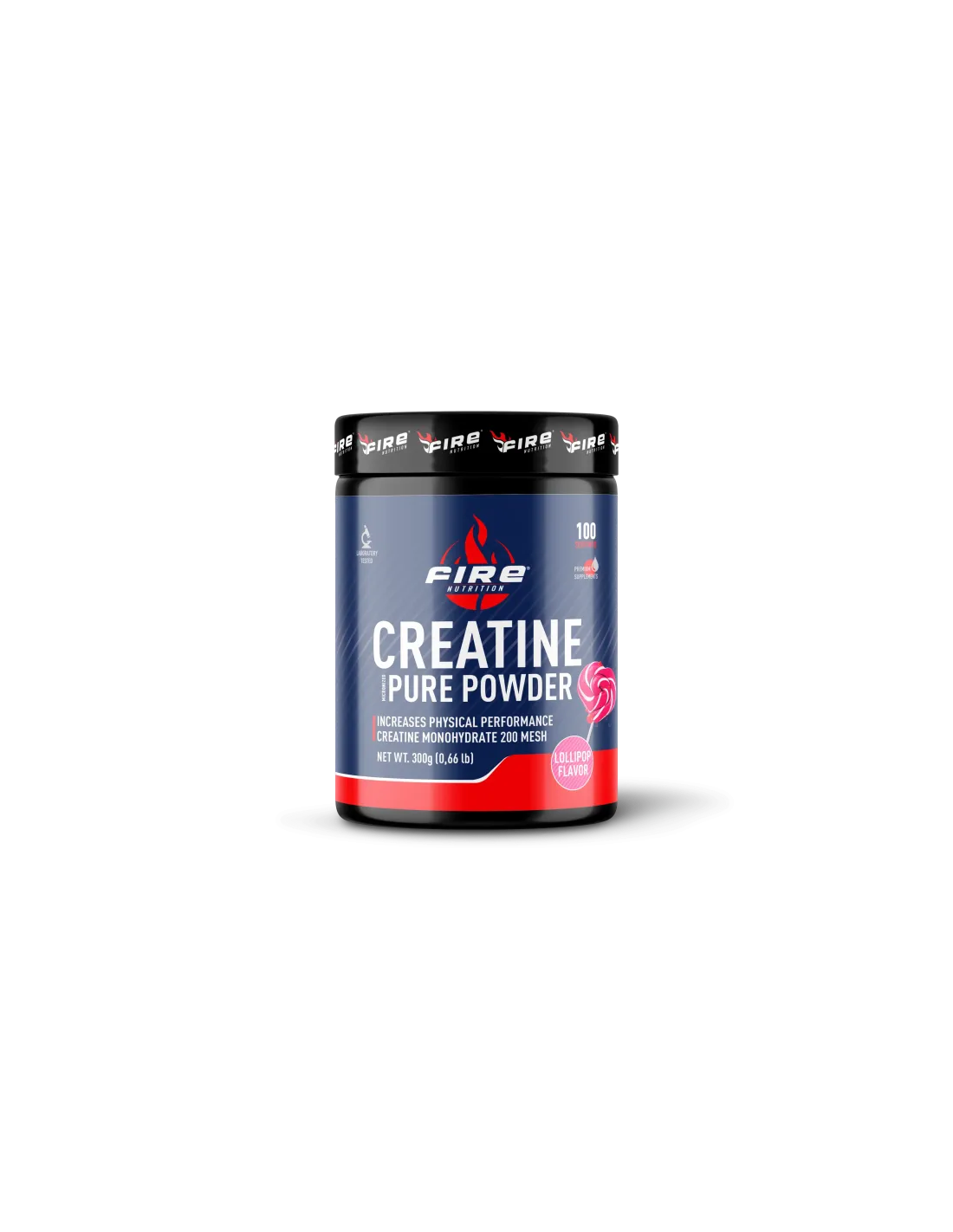 Pure Creatine Powder 300g 200 Mesh de Fire Nutrition, mejora el rendimiento físico en series sucesivas de ejercicios breves de alta intensidad, efecto beneficioso que se obtiene con una ingesta diaria de 3 g de creatina.