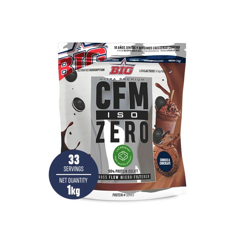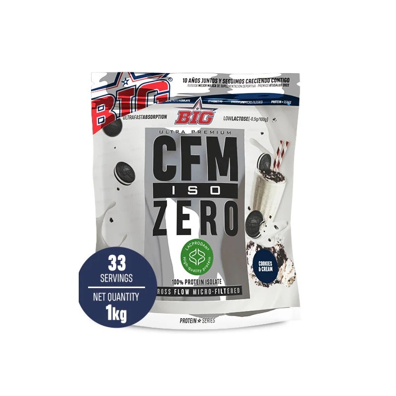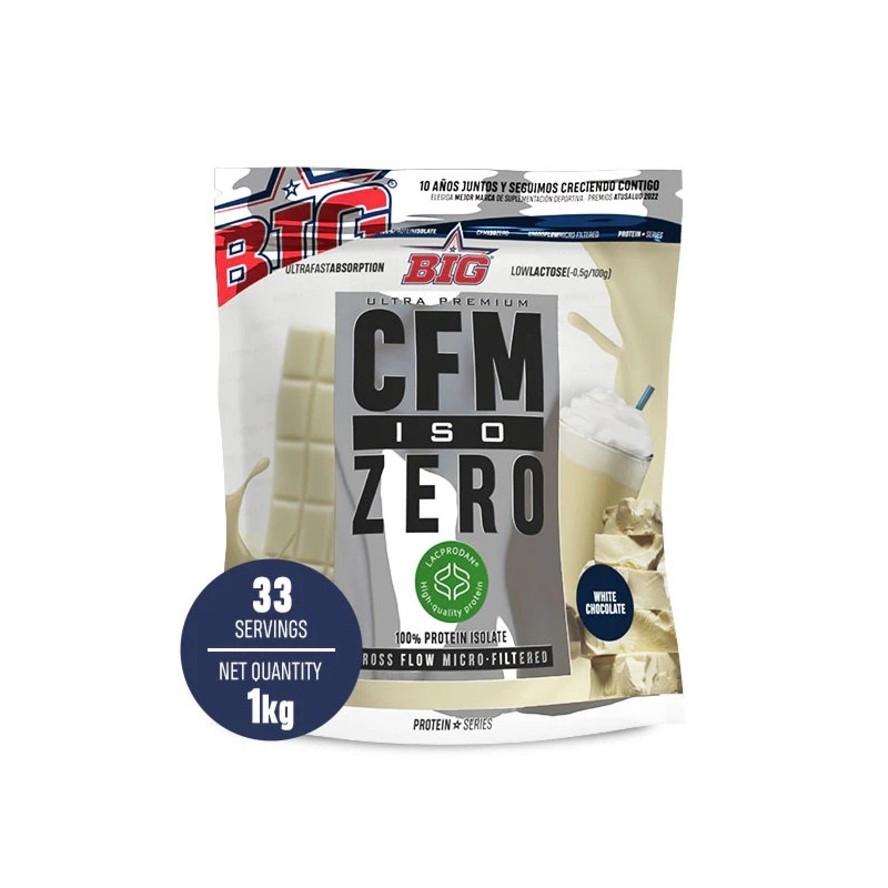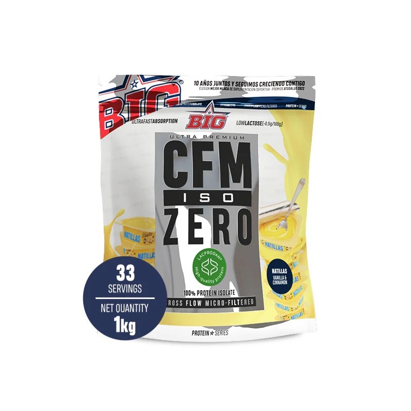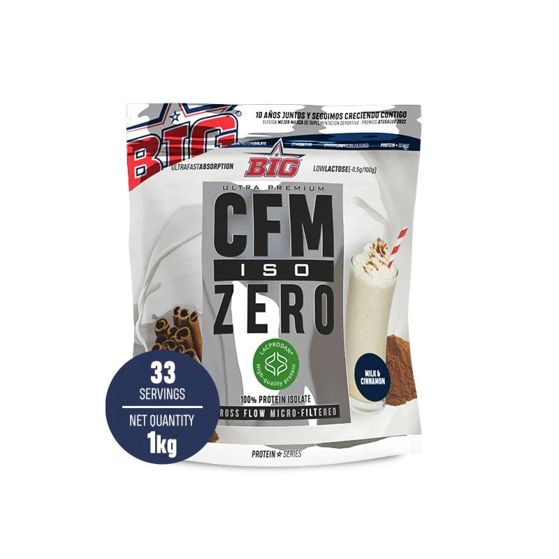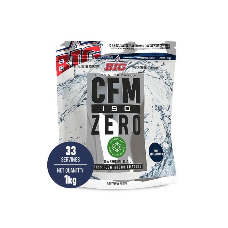 CFM ISO ZERO de BIG® es la evolución natural de nuestra emblemática CFM ISO DRY. CFM ISO ZERO está elaborada exclusivamente con aislado de proteína de suero al 90% de una de las mejores materias primas disponibles en el mercado de la suplementación deportiva: Provon® 295 CFM de Glanbia Nutritionals®. Obtenido tras un proceso de microfiltración de flujo cruzado exclusivo de Glanbia, que asegura que se mantenga el espectro completo de proteínas no desnaturalizadas presentes en el suero de manera natural, Provon® 295 CFM es un aislado de proteína de suero de leche de una calidad excepcional, altamente soluble, disponible en fórmula instantánea y con un sabor totalmente neutro.