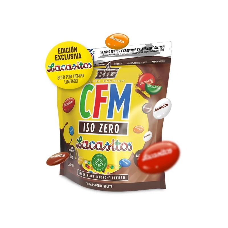 Descubre la nueva proteína CFM ISO ZERO LACASITOS® fruto de una nueva colaboración de BIG® y LACASA®. Disfruta ya del genuíno sabor que te acompañó durante toda tu infancia ¡con auténtico polvo de Lacasitos®!, ahora disponible por tiempo limitado en la mejor proteína del mercado, con la calidad y seguridad que ofrece el mejor aislado de suero Provon® de Glanbia Nutritionals®.
