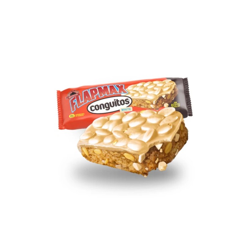 Las nuevas Flapmax Conguitos® de Max Protein® están elaboradas con la mejor avena de Max Protein®, rica en nutrientes y carbohidratos de absorción lenta, que ayudan a mantenerte con energía durante más tiempo, cubierta con una generosa capa de delicioso chocolate negro o blanco y crujientes cacahuetes tostados. Flapmax Conguitos® llega en su versión más extracrujiente, con una textura sorprendente y un sabor que conquista desde el primer bocado.