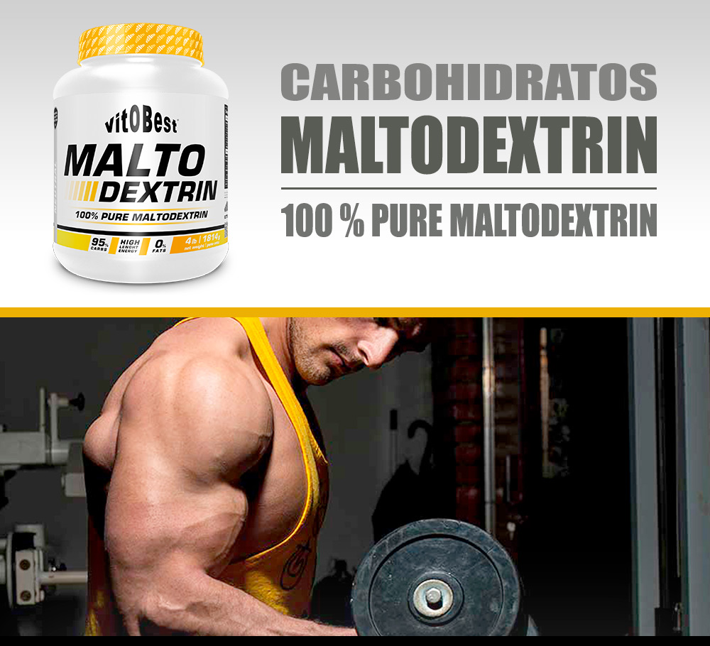 La maltodextrina se porduce a partir del almidón de maíz (waxy maize ) y se convierte en una forma de carbohidrato complejo. La maltodextrinas son cadenas de glucosa y la glucosa es el sustrato de energía mas importante para la fibra muscular durante la ralización de ejercicio. La maltodextrina está indicada para adeportes que necesitan una energía continuada y moderada de intensidad media. Además, los hidratos como la maltodextrina, con un índice glucémico elevado, favorecen la síntesis proteica gracias a la acción de la insulina.