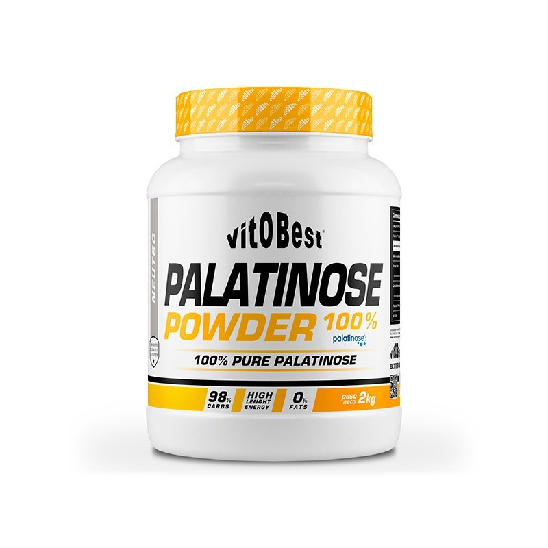 La palatinosa (o isomaltulosa) es un carbohidrato disacárido, compuesto de glucosa y fructosa, similar a la sacarosa y unidas por un vínculo enzimático. Palatinose, de Vitobest®, cuenta con la garantía y calidad de Palatinose: es 100 % vegano, kosher, halal y no transgénico.