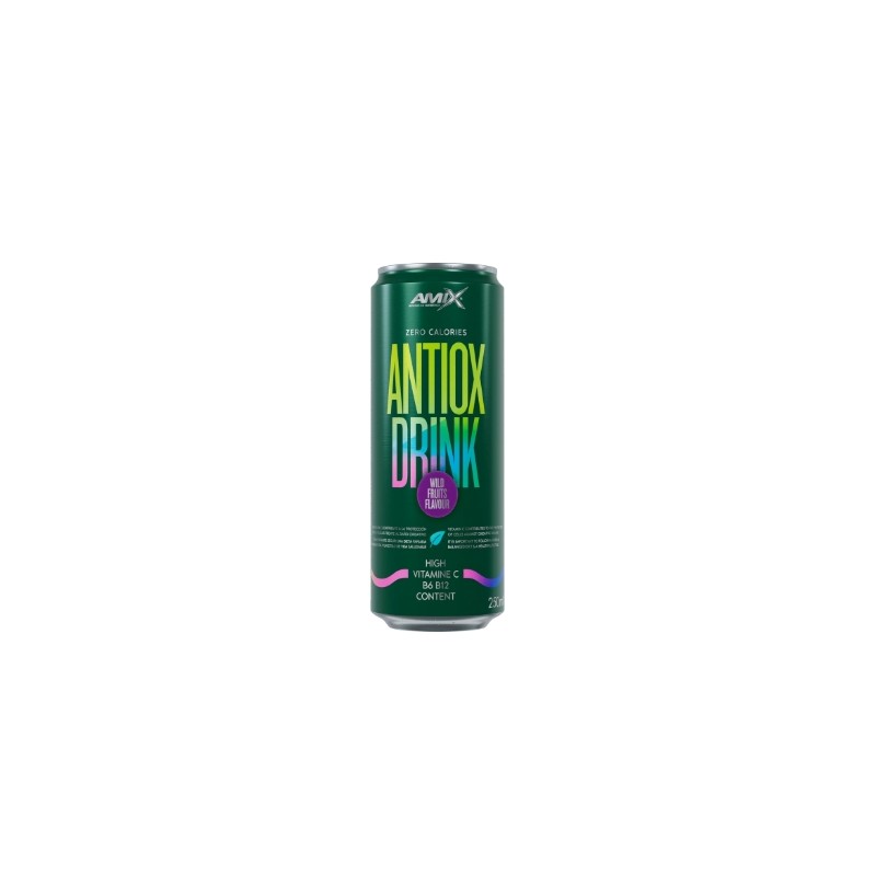 Amix™ Antiox Drink es un complemento alimenticio en forma de bebida con sabor a frutos rojos, que aporta vitamina C junto con vitaminas del grupo B. Se presenta en un formato líquido sin azúcares añadidos y con un bajo aporte energético, lo que la convierte en una opción ligera y refrescante.