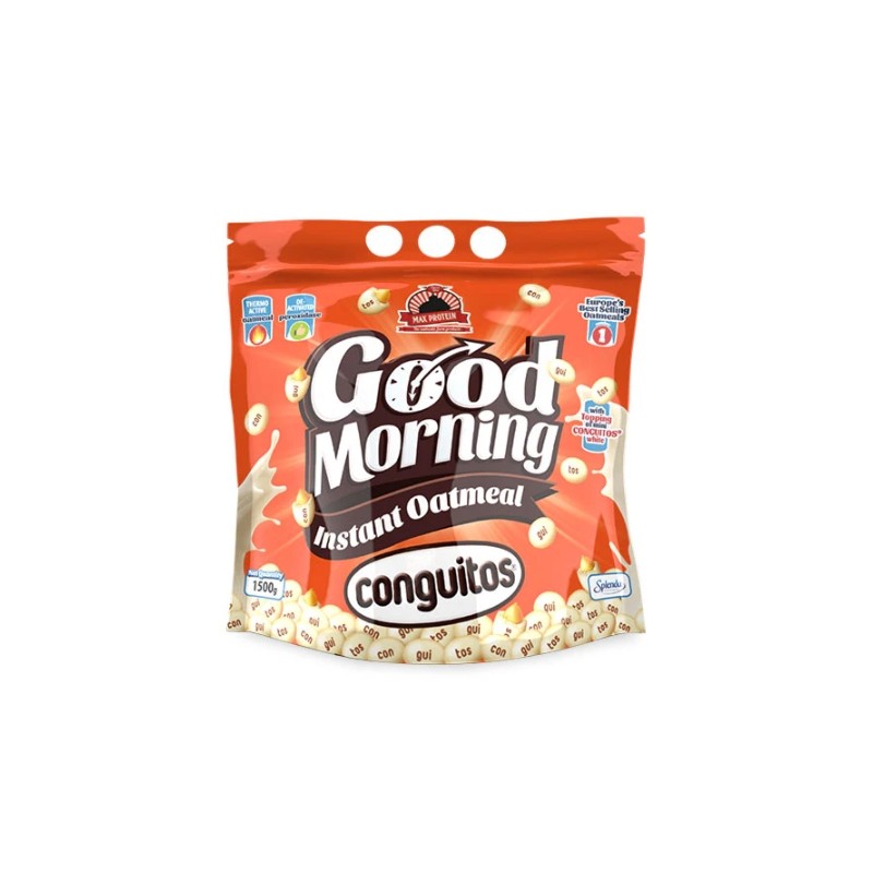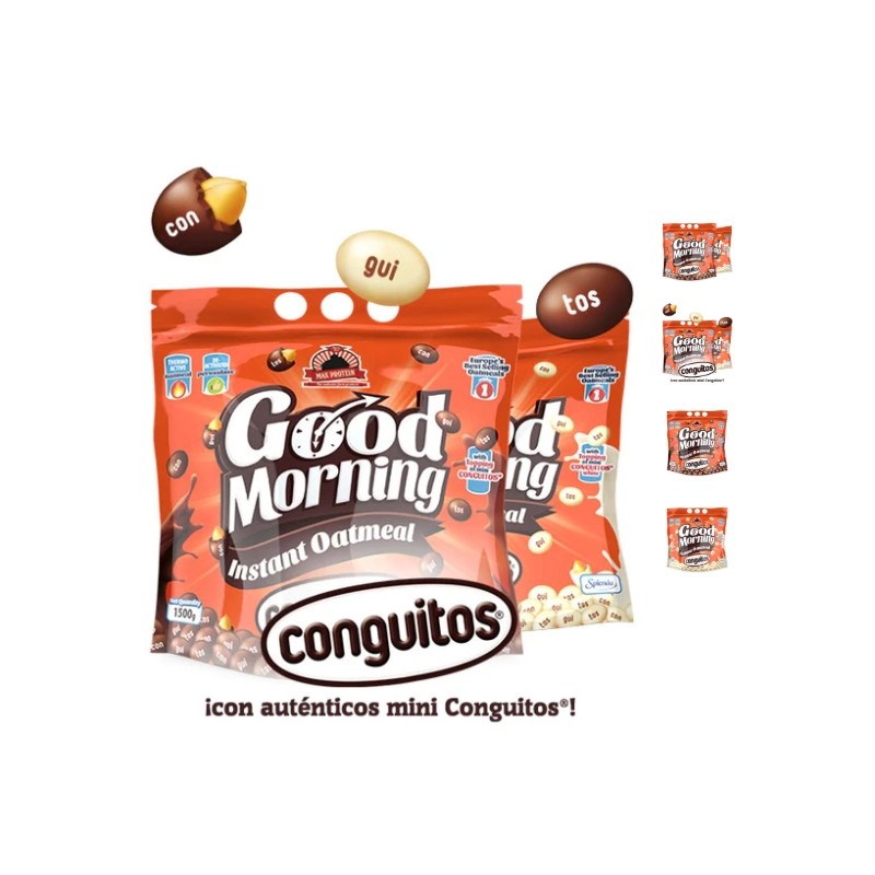 HARINA DE AVENA Good Morning Instant Oatmeal sabor CONGUITOS®, el sabor que te acompañó en tu infancia, ahora en tus desayunos y meriendas... Y es de Max Protein®, ¡el sabor que no pesa!.