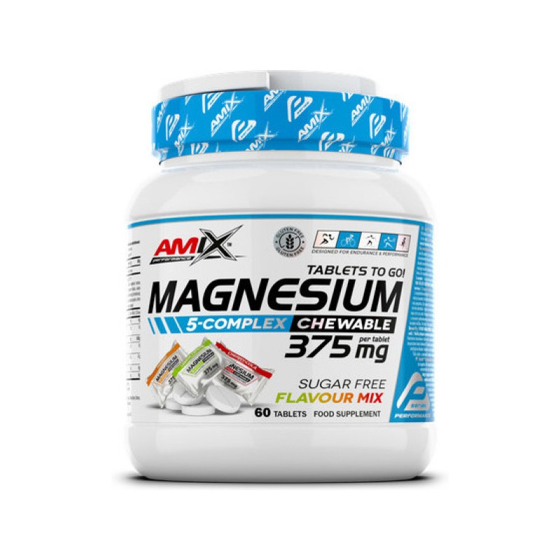 Amix™ Magnesium 5-complex es un complemento alimenticio en comprimidos masticables sin azúcares, formulado con un complejo de cinco formas de magnesio: bisglicinato, citrato, malato, taurato y L-ascorbato. Los comprimidos están diseñados para disolverse en la boca.